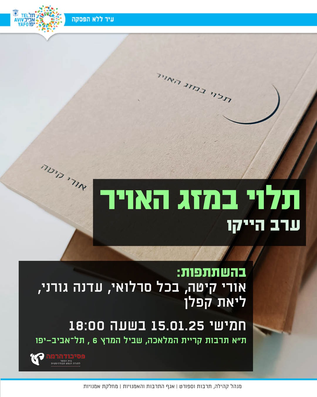 הרצאה על הייקו בבית מלון בעיר הולדתך. המלון לא היה שם כשגרת שם. גם לא השכונה שמסביבו. אתה זוכר חולות. ירח בין ענן שחור לענן לבן נופל לאט אל הים. אתה מחלק דף עם מבחר שירים. ההרצאה עברה ברגע האחרון לבית הכנסת של בית המלון. אתה מניח את ספרי ההייקו שהבאת – באשו, גארי הותם, ג'ק ברי – ליד הסידורים והכיפות הלבנות שלוגו המלון מודפס עליהן.