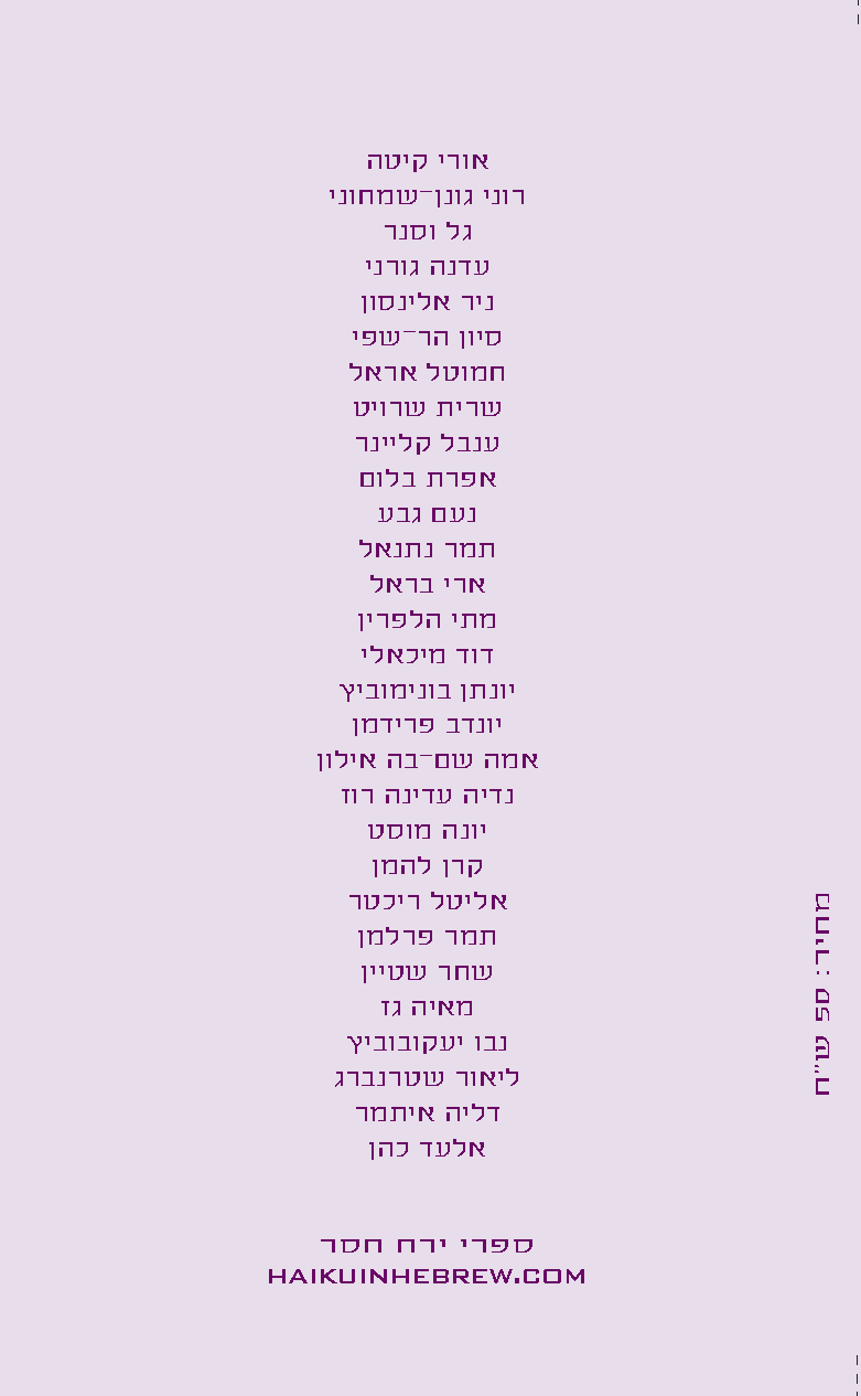 הייקו מקוריים ומתורגמים. משתתפים: ליאת קפלן, יעקב רז, דרור בורשטיין, יובל אידו טל, אלכס בן-ארי, עדנה גורני, אורי קיטה