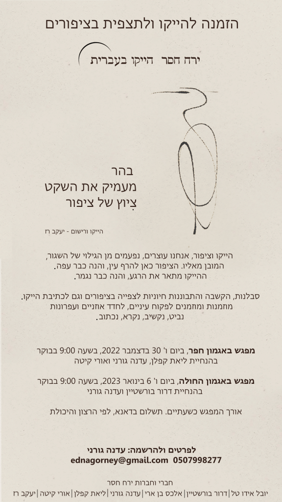הייקו מקוריים ומתורגמים. משתתפים: ליאת קפלן, יעקב רז, דרור בורשטיין, יובל אידו טל, אלכס בן-ארי, עדנה גורני, אורי קיטה