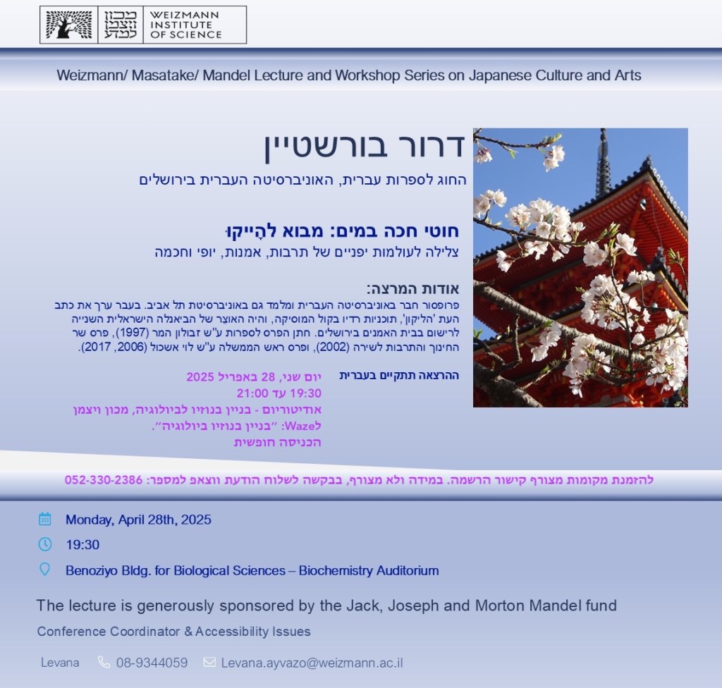 כאן הקישור להרשמה. נדבר בעיקר על שירים של המשורר-צייר היפני בן המאה ה-18 בוסון, בתרגום חדש שטרם פורסם מאת איתן בולוקן.